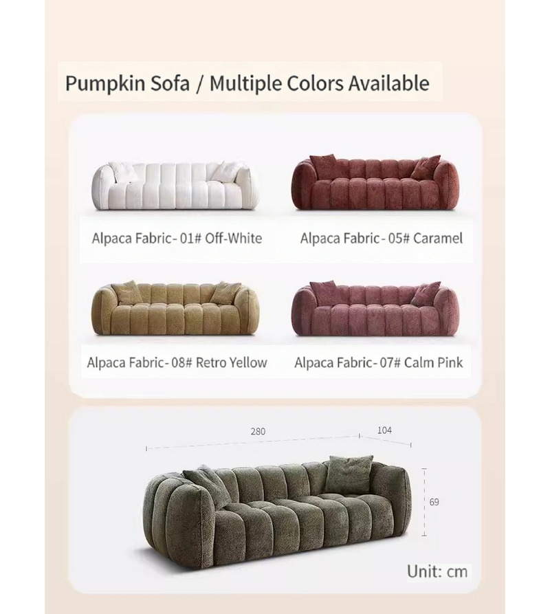 Inspired by the classic works of French designer Pierre Paulin, this sofa features a rounded pumpkin shape to create a wrapped sitting experience, offering a warm and healing resting space in fast-paced life. Its soft curves and vintage tones adapt to a variety of soft furnishing styles, serving as both functional furniture and an artistic decor piece.